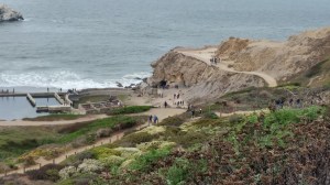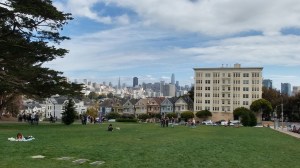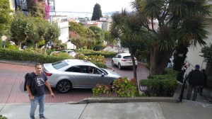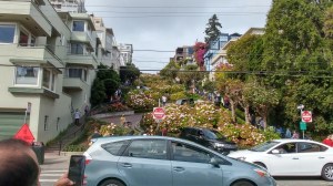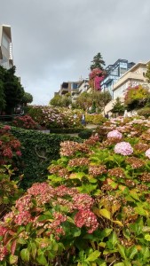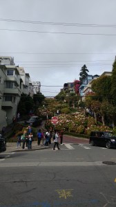 We walked up to the infamous Lombard street, then down the “Crookedest Street” part of it. Whew! Walking up to it was pretty difficult, but going down was quite the adventure! Traffic was backed up for miles with cars waiting to drive down this street.