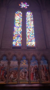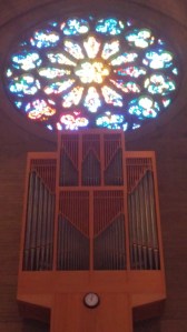 We stopped at an old Episcopal Church. The front doors were beautiful! And the stained glass windows! The organ had pipes in the back of the church, in the front, and along the side of the front of the church.