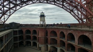 We got our first look at the Golden Gate Bridge. It is amazing! We toured Fort Point, which is under part of the bridge.