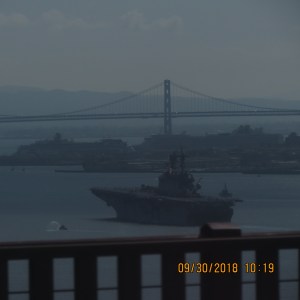 Fleet Week was starting the day after we were in San Francisco. We were fortunate enough to see the modern version of the Iwo Jima, the America. The Iwo Jima was the amphibious ship Chuck was on during Desert Storm. It was very impressive. The first pictures are from near the Golden Gate Bridge. The last one is from Pier 39.